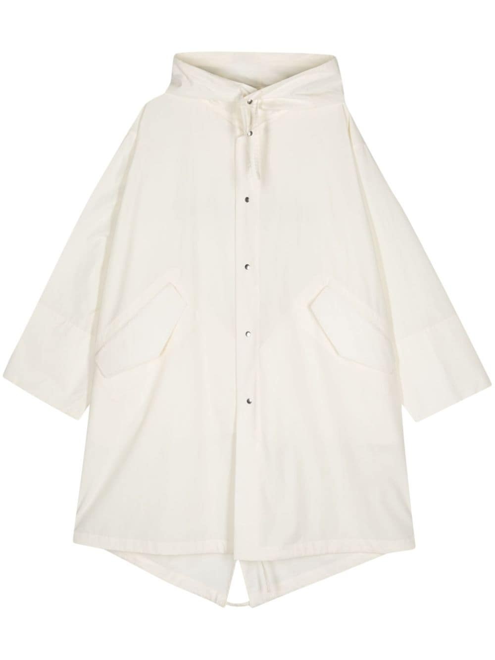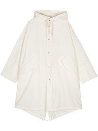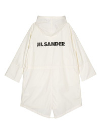 logo-print hooded coat Highlights - Cream white - Cotton - Poplin texture - Drawstring hood - Funnel neck - Drop shoulder - Long sleeves - Two side flap pockets - Below-knee length - Logo print to the rear - Central rear vent - Drawstring hem - Internal drawstring fastening waist - Unlined - Front press-stud fastening Made in Italy Composition Cotton 100%