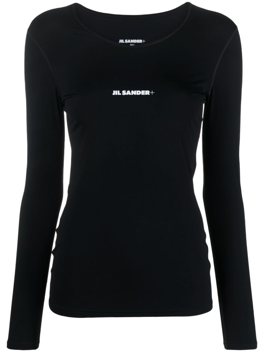 logo-print jersey T-shirt Highlights - Black - Stretch-jersey - Logo print to the front - Wide neck - Long sleeves - Straight hem Made in Italy Composition Polyamide 72%, Elastane 28% SIZE & FIT Model measurements Height 5 ft 10 in(1.78 m) Bust/Chest 33.46 in(85 cm) Hips 36.22 in(92 cm) Waist 23.22 in(59 cm) FittingInformation Designed for a close fit throughout Made from a midweight stretch fabric, this piece offers elasticity and flexibility when worn This piece fits true to size – take your usual size