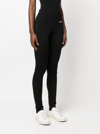 logo-print leggings black virgin wool blend logo print to the front elasticated waistband slim cut pull-on style Made in Italy Composition Polyester 55%, Virgin Wool 45% SIZE & FIT Model measurements Height 5 ft 10 in(1.77 m) Bust/Chest 29.92 in(76 cm) Hips 34.25 in(87 cm) Waist 23.62 in(60 cm) FittingInformation This piece fits true to size. We recommend you get your regular size Cut for a close fit Made with a mid-weight fabric Washing instructions Dry Clean Only