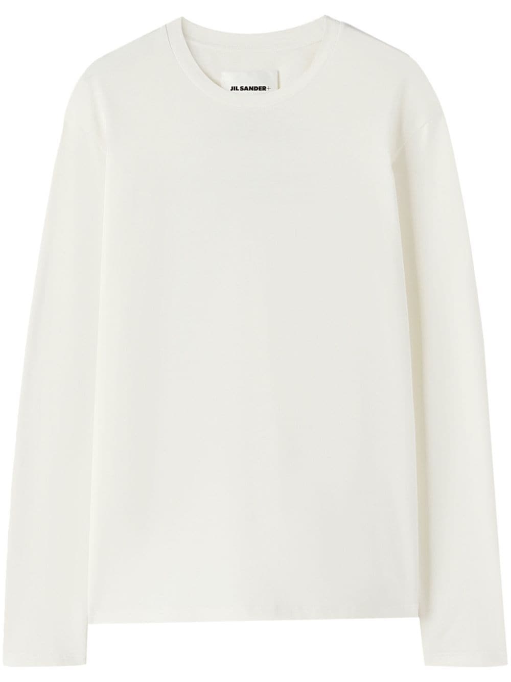 logo-print long-sleeve T-shirt Demonstrating the minimalist aesthetic Jil Sander is renowned for, this white cotton long-sleeve T-shirt is detailed with seasonal logo lettering at the rear. Highlights - White/black - Cotton - Logo print to the rear - Crew neck - Drop shoulder - Long sleeves - Straight hem Made in Italy Composition Cotton 100% SIZE & FIT FittingInformation Designed for an oversized fit, offering additional room throughout This piece fits true to size – take your usual size