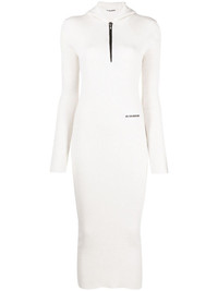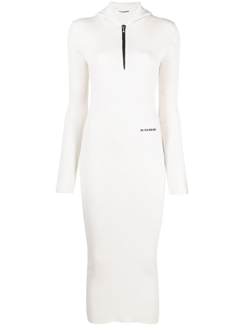 ribbed-knit hooded midi dress Highlights - Light beige - Wool blend - Fine ribbed - Logo print to the front - Classic hood - Short front zip fastening - Long sleeves - Straight hem - Below-knee length Made in Italy Composition Wool 60%, Polypropylene 40% SIZE & FIT Model measurements Height 5 ft 11 in(1.8 m) Bust/Chest 31.49 in(80 cm) Hips 35.82 in(91 cm) Waist 24.8 in(63 cm) Measurement SLEEVE LENGTH 25.98 in(66 cm) HIPS 25.98 in(66 cm) LENGTH 48.81 in(124 cm) WAIST 25.98 in(66 cm) FittingInformation Designed for a slim fit that sits just away from the body offering a close yet comfortable fit Made with a midweight knit, this piece offers some stretch This piece fits true to size – take your usual size Washing instructions Dry Clean Only