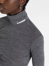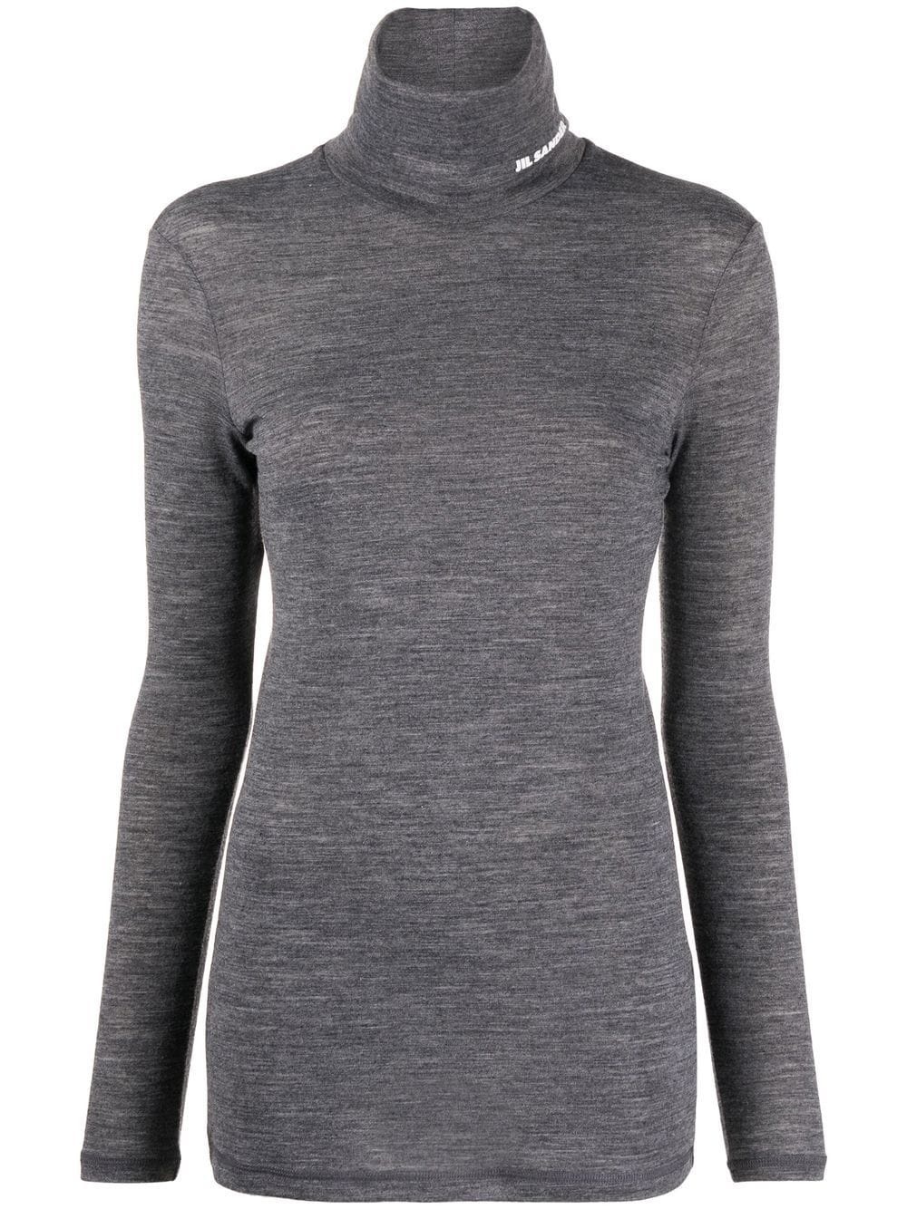 fine-knit top Jil Sander's signature minimalist design style is showcased on this long-sleeve top, which features a logo-print at the neck in an eye-catching contrasting colourway. Highlights - Heather grey - Roll neck - Logo print at the neckline Made in Italy Composition Polyester 55%, Virgin Wool 45% SIZE & FIT Model measurements Height 5 ft 10 in(1.77 m) Bust/Chest 32.28 in(82 cm) Hips 35.03 in(89 cm) Waist 25.19 in(64 cm) Measurement SLEEVE LENGTH 24.8 in(63 cm) LENGTH 25.19 in(64 cm) BUST 31.49 in(80 cm) Shoulder Width 13.77 in(35 cm) FittingInformation This piece fits true to size. We recommend you get your regular size Cut for a slim fit Made with a lightweight fabric Washing instructions Dry Clean Only