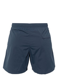 logo-print swim shorts Highlights - Navy blue - Textured finish - Elasticated waistband - Two side welt pockets - Logo print to the side - Short side slits - Rear zip-fastening pocket - Partial lining - Thigh-length - Internal drawstring fastening waist - Be mindful to try on swimwear over your own garments. Made in Italy Composition Polyamide 92%, Elastane 8%