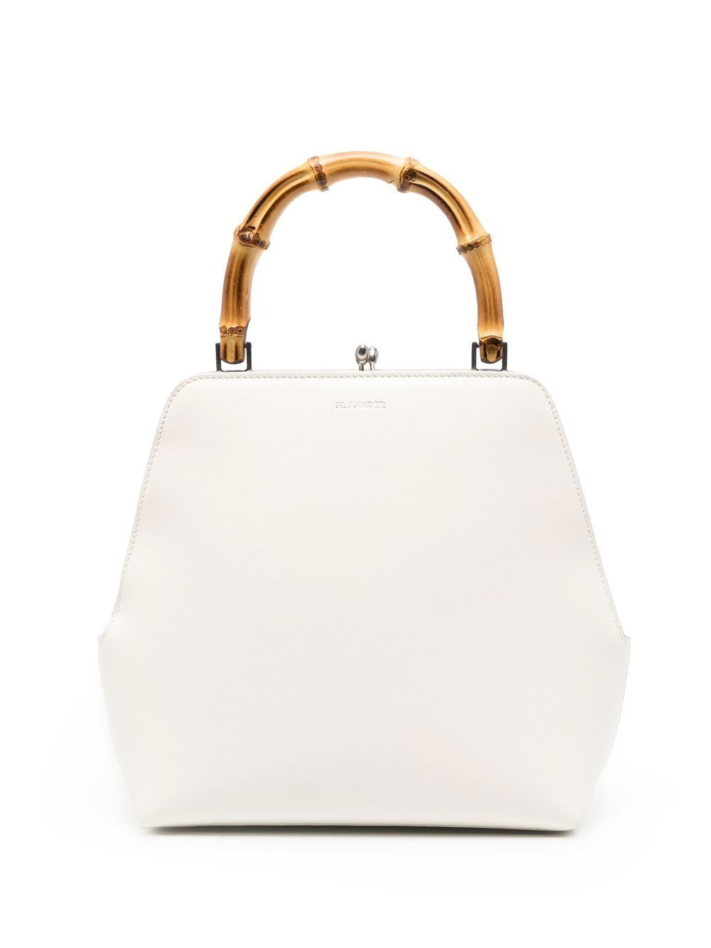 logo-print tote bag Highlights - White - Logo print to the front - Signature bamboo top handle - Twist-lock closure - Main compartment Made in Italy Composition Outer: Calf Leather 100% SIZE & FIT Model measurements Height 5 ft 11 in(1.8 m) Bust/Chest 31.49 in(80 cm) Hips 35.82 in(91 cm) Waist 24.8 in(63 cm) Measurement DEPTH 3.54 in(9 cm) HANDLE 3.54 in(9 cm) HEIGHT 7.87 in(20 cm) WIDTH 9.84 in(25 cm)