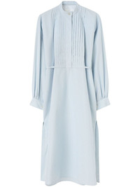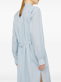 long-sleeve cotton midi dress Highlights - Light blue - Cotton - Pinstripe pattern - Band collar - Concealed front button fastening - Long sleeves - Buttoned cuffs - Detachable and adjustable waist belt - Two thigh-high side slits Made in Italy Composition Cotton 100%