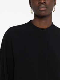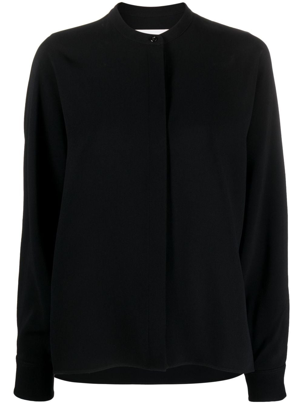 long-sleeve shirt Jil Sander elevates a classic shirt with this design. Fitted with long sleeves, it has a collarless construction that emphasises the minimalist feel. Highlights - Black - Collarless - Front button fastening - Long sleeves Made in Italy Composition Viscose 54%, Acetate 46% SIZE & FIT Model measurements Height 5 ft 10 in(1.77 m) Bust/Chest 32.28 in(82 cm) Hips 35.03 in(89 cm) Waist 25.19 in(64 cm) Measurement LENGTH 26.77 in(68 cm) FittingInformation Designed to be unstructured, offering a loose fit throughout Made from a midweight non-stretch fabric, this piece offers minimal elasticity when worn This piece fits true to size – take your usual size Washing instructions Dry Clean Only