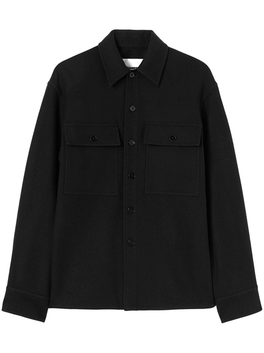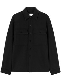 long-sleeve wool flannel overshirt Highlights - Black - Virgin wool - Flannel - Classic collar - Two chest flap pockets - Long sleeves - Buttoned cuffs - Front button fastening - Straight hem Made in Italy Composition Virgin Wool 100% SIZE & FIT FittingInformation Designed for a relaxed fit, this piece allows for comfort and movement when worn Made from a midweight non-stretch fabric