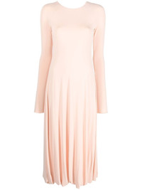 long-sleeved flared dress blush pink stretch-jersey knot detailing rounded collar long sleeves flared hem open back mid-calf length Made in Italy Composition Viscose 94%, Elastane 6% SIZE & FIT Model measurements Height 5 ft 9 in(1.76 m) Bust/Chest 33.07 in(84 cm) Hips 38.58 in(98 cm) Waist 24.8 in(63 cm) Measurement LENGTH 46.06 in(117 cm) WAIST 32.28 in(82 cm) HIPS 41.73 in(106 cm) FittingInformation This piece fits true to size. We recommend you get your regular size Designed for a close fit at the bust, waist and hips Made with a mid-weight stretch fabric Washing instructions Dry Clean Only