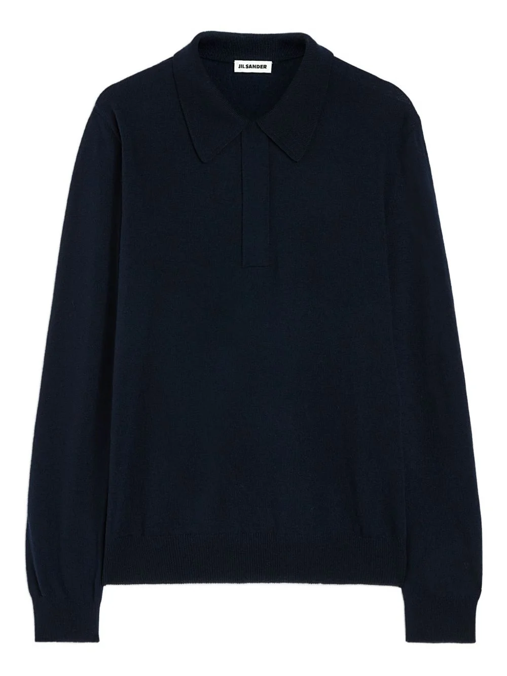 long-sleeves polo sweater Highlights - Dark blue - Zip closure - Ribbed hem and cuffs - Lightweight knit Made in Italy Composition Wool 100% Washing instructions Read Manufacturer Guidelines