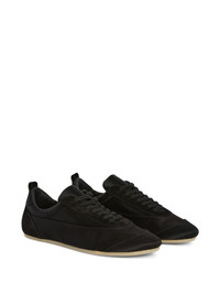 low-top sneakers Highlights - Black - Lace-up front - Back loop - Embossed logo Made in Italy Composition Outer: Leather 100%, Silk 44%, Recycled Polyester 36% Sole: Rubber 100% Lining: Leather 100%