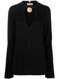 medallion-detail knit top The sophisticated minimalism that Jil Sander is renowned for is on full display with this knitted top. The long-sleeve silhouette boasts a virgin wool construction in an understated black hue which allows the medallion detail at the front to take centre stage - imbuing the refined piece with an undeniable elegance. Made in Italy Composition Virgin Wool 100% SIZE & FIT Model measurements Height 5 ft 10 in(1.78 m) Bust/Chest 30.7 in(78 cm) Hips 34.64 in(88 cm) Waist 23.22 in(59 cm) FittingInformation This piece fits true to size. We recommend you get your regular size Cut for a relaxed fit Made with a mid-weight fabric Washing instructions Dry Clean Only