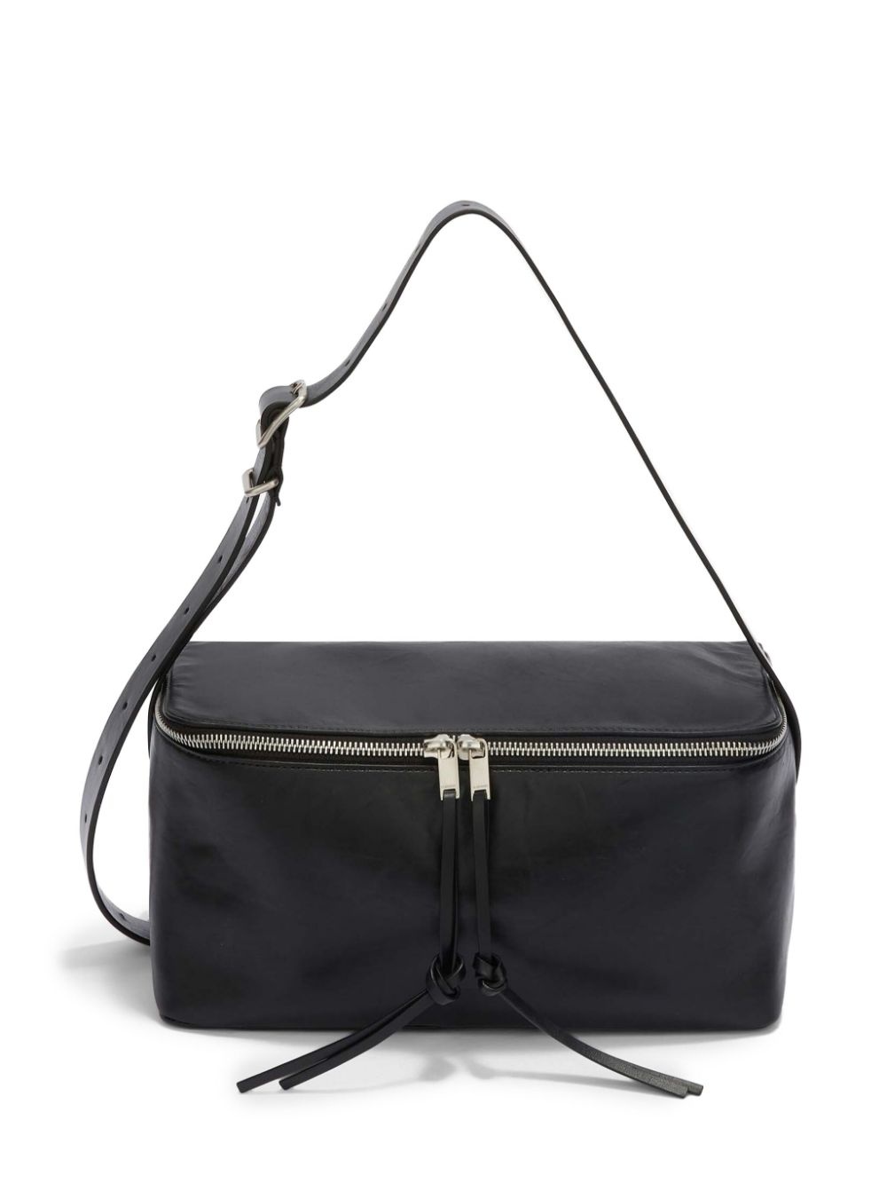 medium leather shoulder bag The refined minimalism that Jil Sander is renowned for is on full display with this bag. It is crafted from leather in a sleek black hue and features an adjustable shoulder strap for versatile wearing options. Highlights - Black - Calf leather - Adjustable shoulder strap - All-around zip fastening - Main compartment - Internal slip pocket - Debossed internal logo Made in Italy Composition Outer: Calf Leather 100%