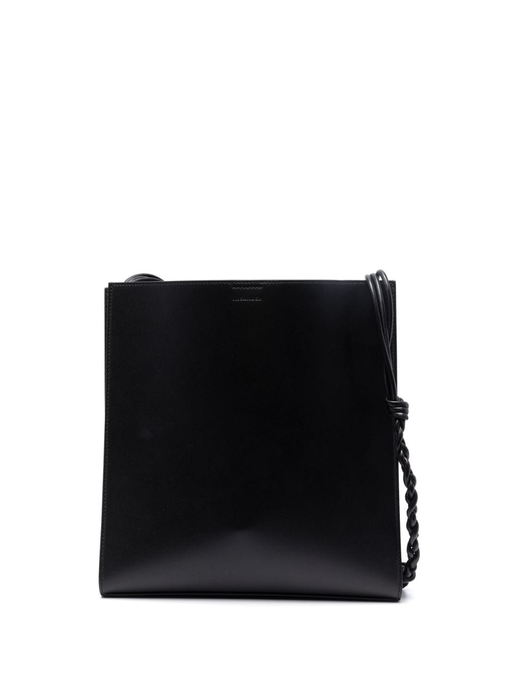 medium Tangle leather shoulder bag Highlights - Black - Calf leather - Polished finish - Embossed logo to the front - Embossed internal logo - Tonal stitching - Rectangle shape - Magnetic fastening - Single braided shoulder strap - Internal patch pockets - Main compartment Made in Italy Composition Outer: Bovine Leather (top grain) 100%, Calf Leather 100% Lining: Bovine Leather (top grain) 100% SIZE & FIT Model measurements Height 6 ft 2 in(1.87 m) Bust/Chest 35.82 in(91 cm) Hips 35.43 in(90 cm) Waist 27.95 in(71 cm) Measurement DEPTH 1.57 in(4 cm) HEIGHT 10.82 in(27.5 cm) STRAP 21.65 in(55 cm) WIDTH 10.03 in(25.5 cm)