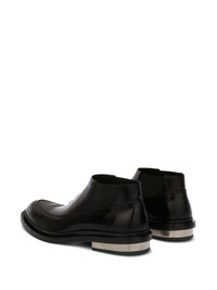 metal-detail leather boots Highlights - Black - Calf leather - Panelled design - Almond toe - Elasticated side panels - Rubber sole with metal detail - Slip-on style Made in Italy Composition Outer: Leather 100%, Fabric 100% Sole: Calf Leather 100% Lining: Calf Leather 100%