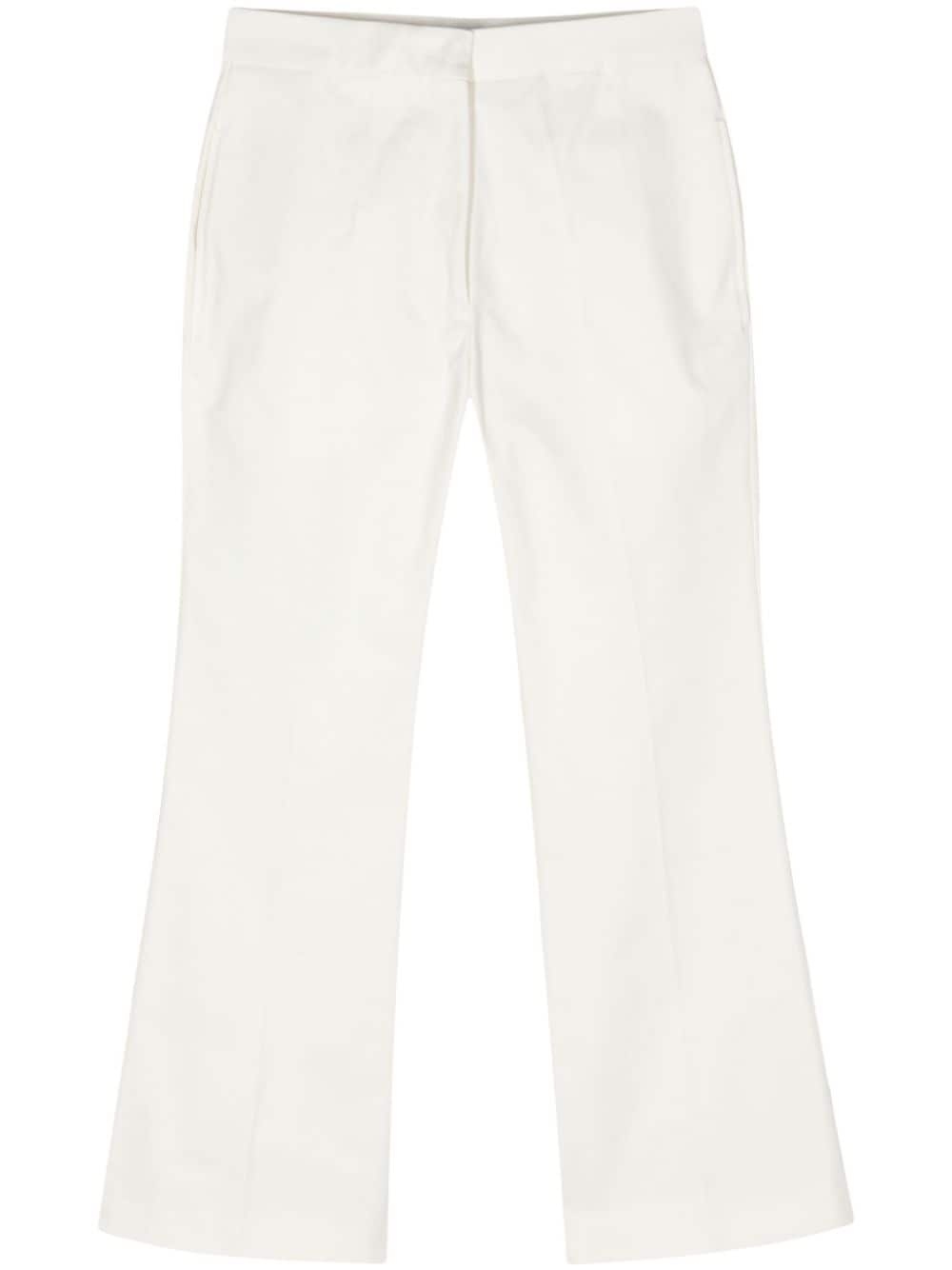 mid-rise flared gabardine trousers Highlights - Chalk white - Cotton - Gabardine weave - Pressed crease - Mid-rise - Concealed front fastening - Two side slit pockets - Two rear welt pockets - Flared hem Made in Italy Composition Lining: Cotton 100% Outer: Cotton 100%