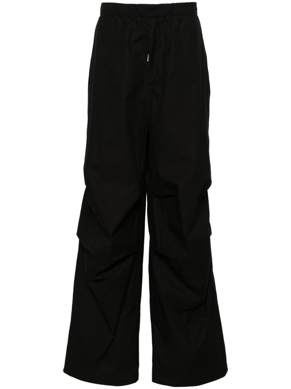 mid-rise straight-leg trousers Highlights - Black - Cotton - Poplin texture - Mid-rise - Front press-stud and zip fastening - Elasticated waistband with internal drawstring - Two side stud-fastening pockets - Two rear stud-fastening pockets - Straight leg with drawstring hem Made in Italy Composition Cotton 100% SIZE & FIT Model measurements Height 6 ft 2 in(1.88 m) Bust/Chest 36.61 in(93 cm) Hips 35.82 in(91 cm) Waist 27.95 in(71 cm) FittingInformation Designed with a wide leg, offering a loose and roomy fit Adjust this piece’s waistband to your preference using the drawstring Made from a midweight non-stretch fabric This piece fits true to size – take your usual size