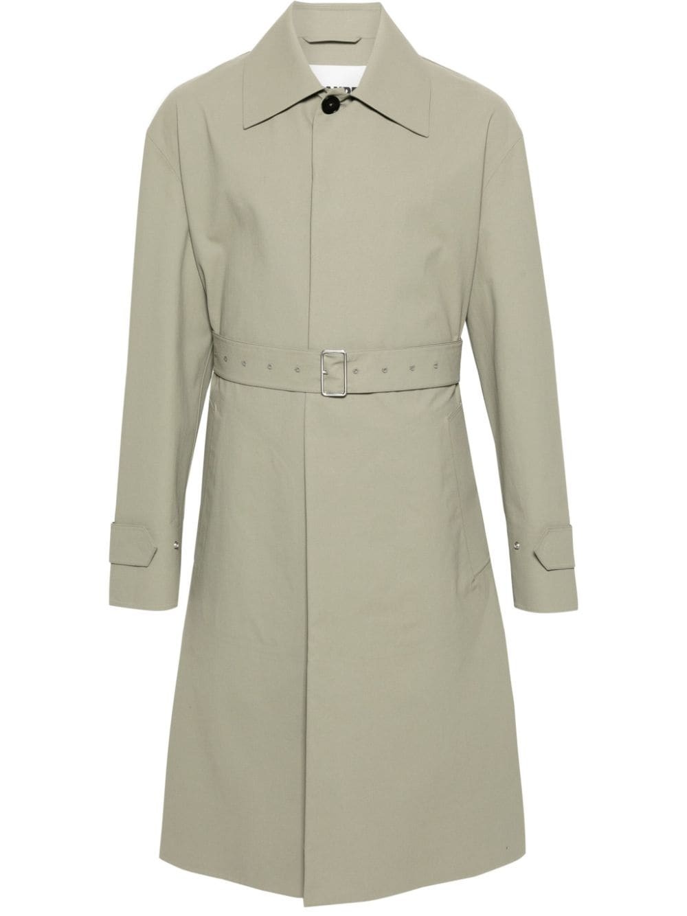 midi trench coat Highlights - Olive green - Cotton - Spread collar - Long sleeves - Detachable waist belt - Two side welt pockets - Central rear vent - Internal locker loop - Internal logo tag - Mid-length - Straight hem Made in Italy Composition Outer: Cotton 100% Lining: Cotton 100% SIZE & FIT Model measurements Height 6 ft 2 in(1.87 m) Bust/Chest 36.41 in(92.5 cm) Hips 37 in(94 cm) Waist 29.52 in(75 cm) FittingInformation Designed to be unstructured, offering a loose fit throughout The belt offers adjustability for fitted preferences Made from a midweight non-stretch fabric This piece fits true to size – take your usual size Washing instructions Dry Clean Only