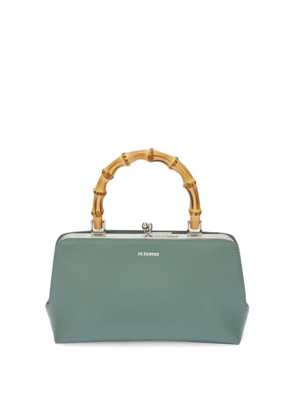 Mini bamboo and leather tote Green