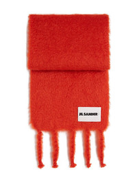 mohair-blend scarf Highlights - Blood red - Self-tie fastening - Logo patch to the front - Fringed edge Imported Composition Mohair 73%, Wool 24%, Polyamide 3%