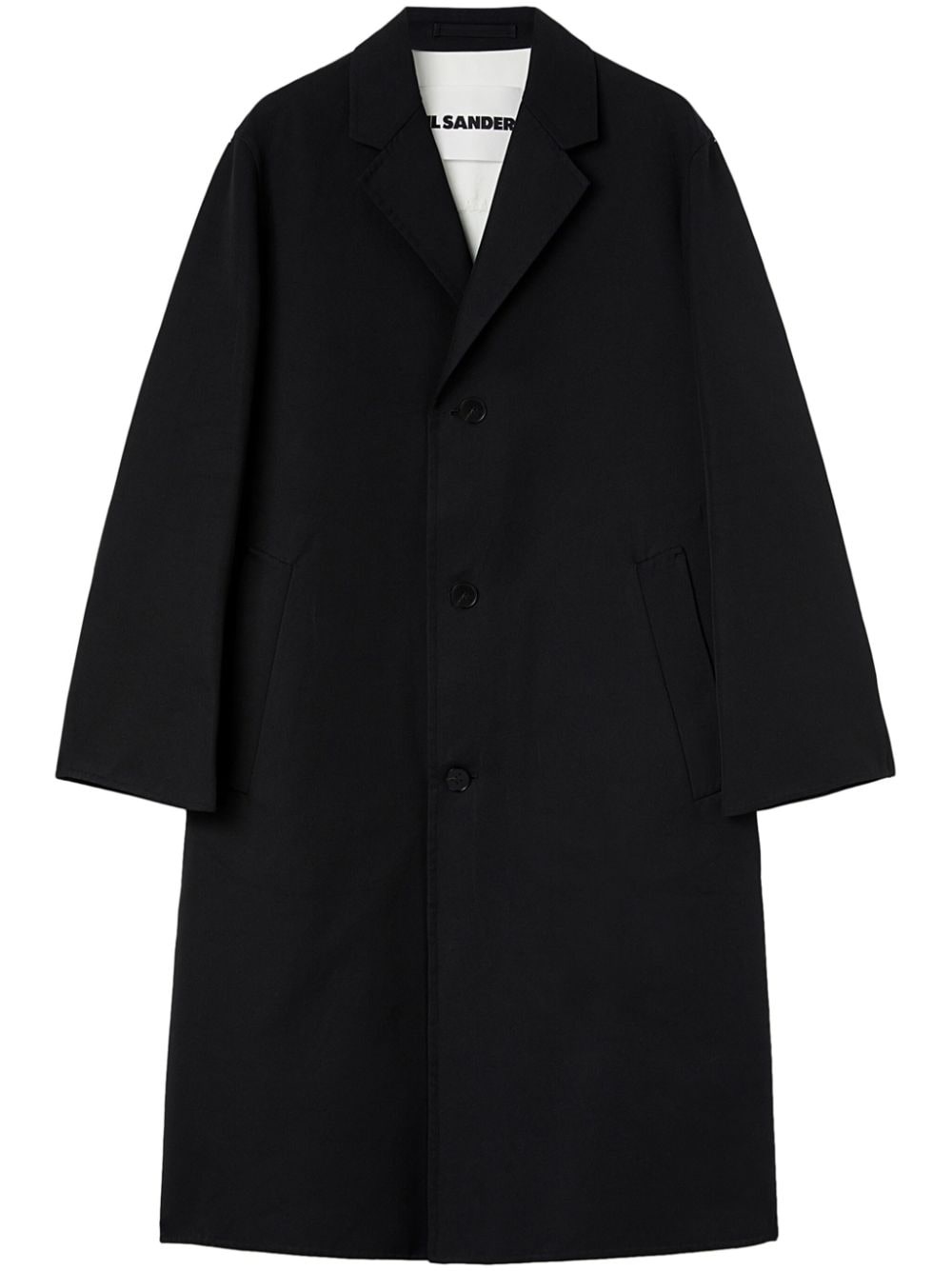 notched-lapel single-breasted coat Highlights - Black - Cotton-silk blend - Notched lapels - Front button fastening - Long sleeves - Two side welt pockets - Straight hem - Central rear vent - Partial lining - Knee-length Made in Italy Composition Cotton 99%, Silk 1% Washing instructions Read Manufacturer Guidelines