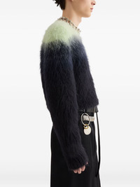 ombre sweater Highlights - Mint green and navy blue - Soft fluffy texture - Crew neck - Long sleeves - Ribbed cuffs Made in Italy Composition Mohair 67%, Polyamide 28%, Wool 5% Washing instructions Read Manufacturer Guidelines