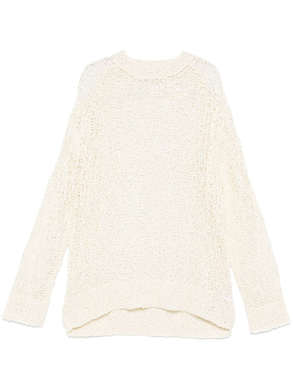 open-knit sweater Highlights - Ecru - Crew neck - Drop shoulder - Long sleeves Made in Italy Composition Cotton 100% SIZE & FIT Model measurements Height 6 ft 2 in(1.87 m) Bust/Chest 38.97 in(99 cm) Hips 37.99 in(96.5 cm) Waist 29.52 in(75 cm) FittingInformation Designed to be unstructured, offering a loose fit throughout Made with a lightweight knit, this piece offers some stretch