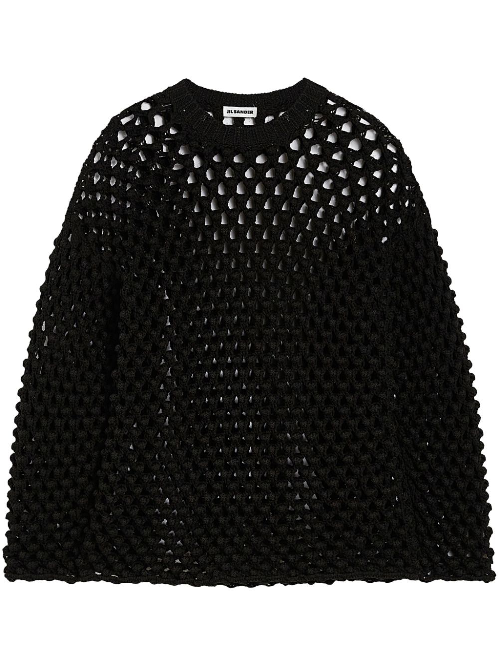 open knit sweater Highlights - Black - Polypropylene - Open knit - Ribbed round neck - Long sleeves - Internal logo patch Made in Italy Composition Polypropylene 100% SIZE & FIT FittingInformation Designed to be unstructured, offering a loose fit throughout Made with a midweight knit, this piece offers some stretch
