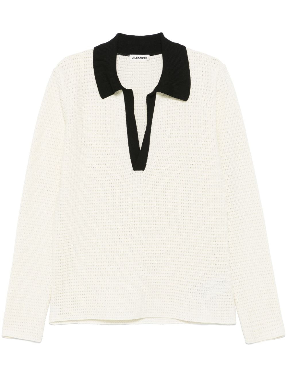 open-knit sweater Highlights - White - Split neck - Long sleeves - Contrasting trim Made in Italy Composition Cotton 100% SIZE & FIT Model measurements Height 6 ft 2 in(1.87 m) Bust/Chest 37.79 in(96 cm) Hips 37.79 in(96 cm) Waist 30.31 in(77 cm) FittingInformation Designed for a regular fit, this polo shirt offers a comfortable loose fit throughout the body Made with a midweight knit, this piece offers some stretch