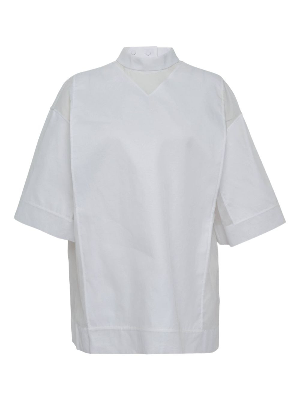 Organdy cotton top white short sleeves button fastening high neck boxy shape sheer panel Imported Composition Cotton 100% Washing instructions Read Manufacturer Guidelines