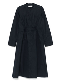 organic cotton dress Highlights - Navy blue - Front button fastening - Pleat detailing - Smocked waist - A-line skirt Made in Italy Composition Organic Cotton 100% SIZE & FIT Model measurements Height 5 ft 9 in(1.75 m) Bust/Chest 34.64 in(88 cm) Hips 36.61 in(93 cm) Waist 26.37 in(67 cm) FittingInformation Designed for a slim fit that sits just away from the body offering a close yet comfortable fit The partially elasticated waistband offers increased movement and comfort at the waist Made from a midweight non-stretch fabric