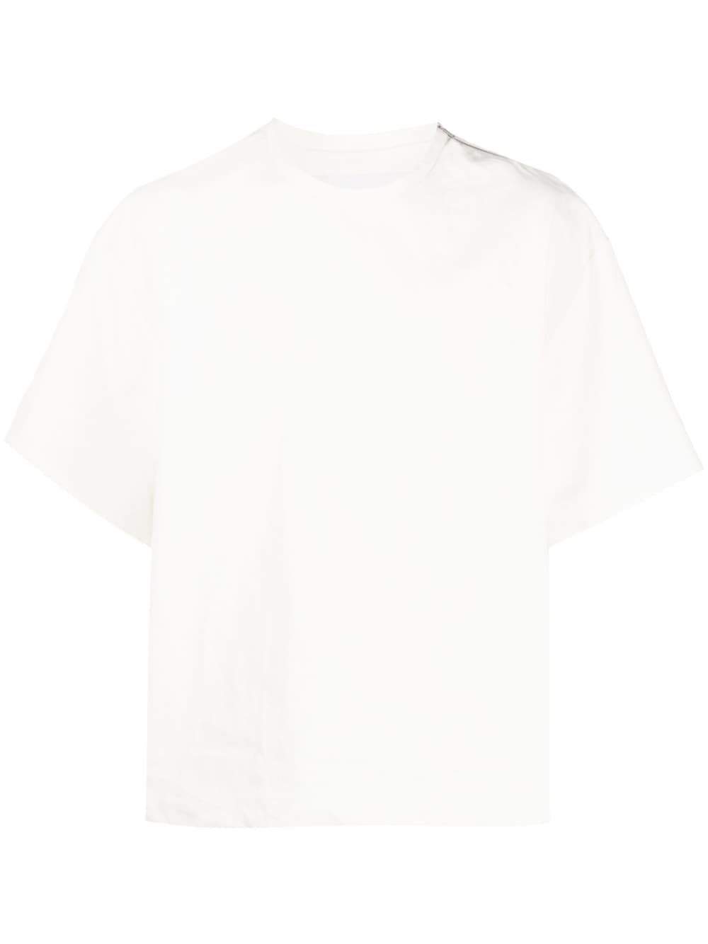 oversize cotton T-shirt Highlights - White - Cotton - Oversize frame - Round neck - Short sleeves - Straight hem - Decorative zip detailing - Oversize arms Made in Italy Composition Lining: Cotton 100% Outer: Linen/Flax 100% SIZE & FIT Model measurements Height 6 ft 2 in(1.87 m) Bust/Chest 35.82 in(91 cm) Hips 35.43 in(90 cm) Waist 27.95 in(71 cm) FittingInformation Designed to be unstructured, offering a loose fit throughout Made from a midweight non-stretch fabric This piece fits true to size – take your usual size Washing instructions Dry Clean Only