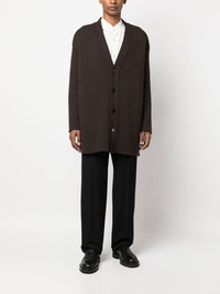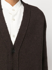 oversize V-neck cardigan brown wool-mohair blend knitted construction front button fastening V-neck drop shoulder long sleeves long length straight hem Made in Italy Composition Wool 70%, Mohair 20%, Polyamide 10% SIZE & FIT Model measurements Height 6 ft 2 in(1.87 m) Bust/Chest 37 in(94 cm) Hips 33.85 in(86 cm) Waist 27.95 in(71 cm) FittingInformation This piece fits true to size. We recommend you get your regular size Cut for a loose fit Made with a mid-weight fabric Washing instructions Dry Clean Only