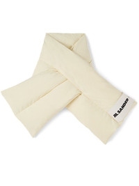padded down scarf Highlights - Ecru - Duck down - Padded design - Logo patch to the front - Wraparound style Made in Italy Composition Outer: Recycled Polyester 100% Filling: Goose Down 85%, Goose Feather 15% SIZE & FIT Measurement LENGTH 45.27 in(115 cm) WIDTH 9.05 in(23 cm) Washing instructions Read Manufacturer Guidelines