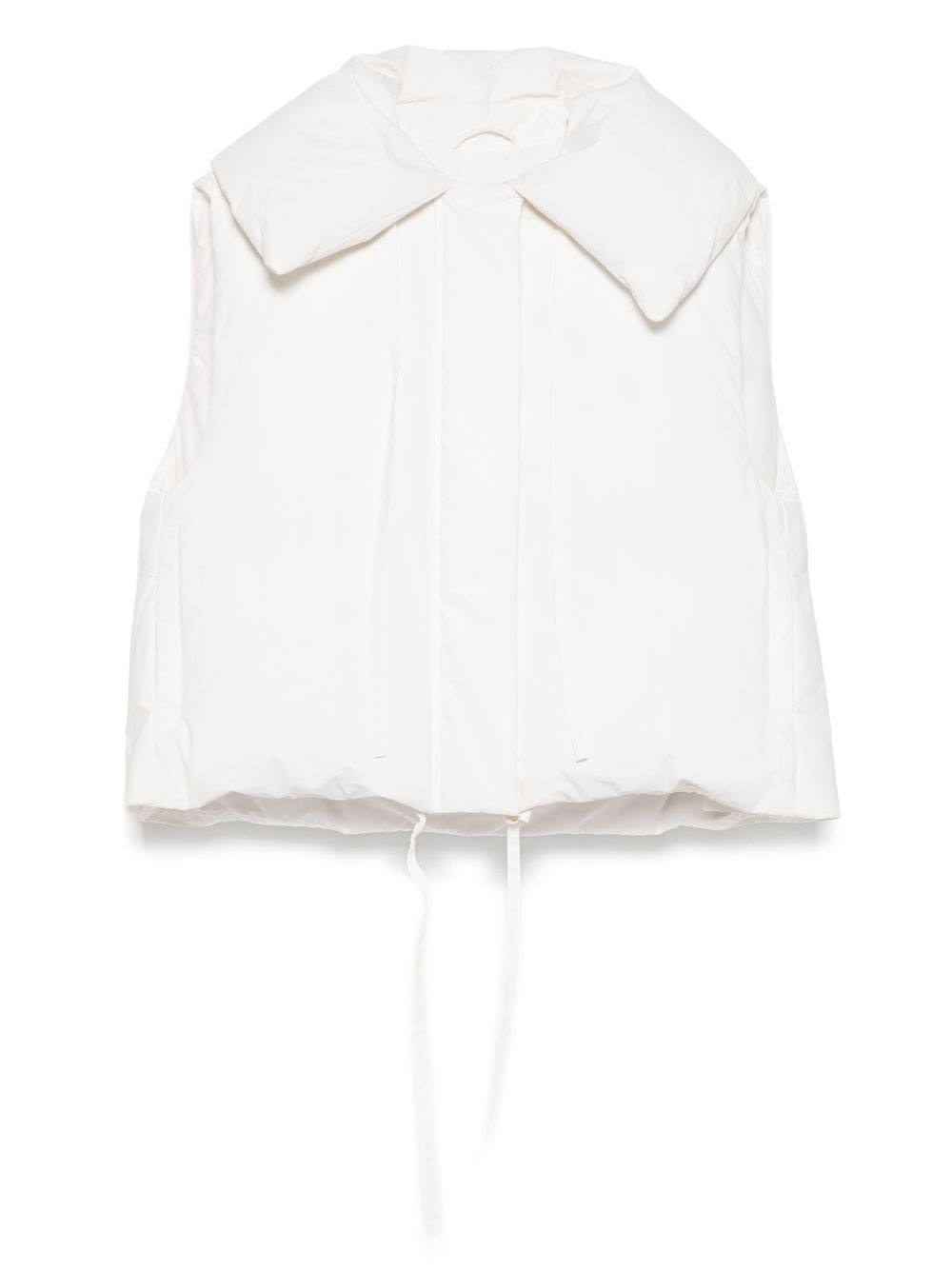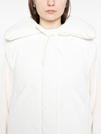 padded jacket Highlights - White - Down-feather filling - Front press-stud and zip fastening - Two side welt pockets - Sleeveless Made in Italy Composition Lining: Cotton 100% Goose Down 85%, Goose Feather 15% Outer: Cotton 100% SIZE & FIT Model measurements Height 5 ft 10 in(1.78 m) Bust/Chest 32.67 in(83 cm) Hips 37 in(94 cm) Waist 25.59 in(65 cm) FittingInformation Designed to be unstructured, offering a loose fit throughout Made from a midweight non-stretch fabric Washing instructions Dry Clean Only