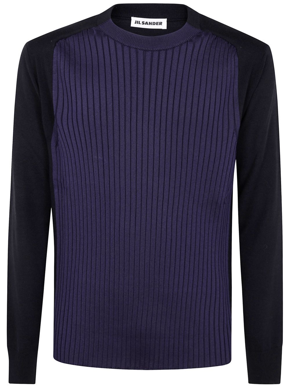panelled jumper Highlights - Navy blue - Ribbed detailing - Crew neck - Panelled design Made in Italy Composition Wool 100%