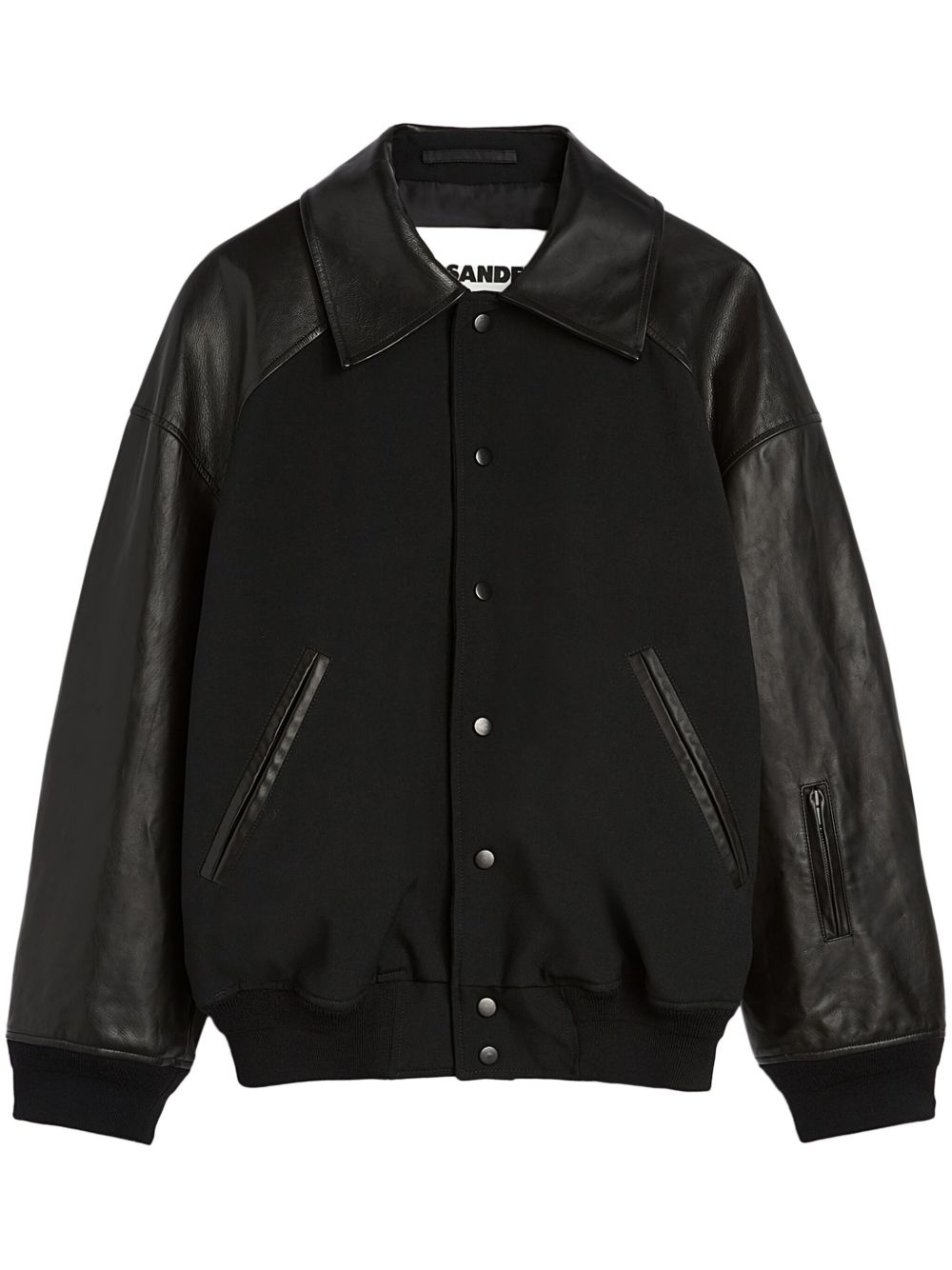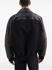 panelled leather jacket Highlights - Black - Front press-stud fastening - Two front welt pockets - Sleeve zip pocket - Ribbed cuffs and hem Made in Italy Composition Wool 100%, Calf Leather 100% Washing instructions Read Manufacturer Guidelines