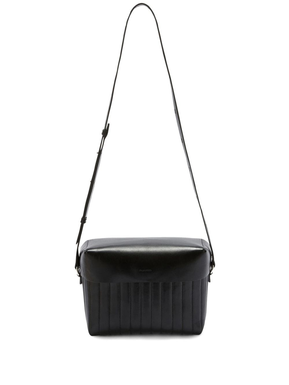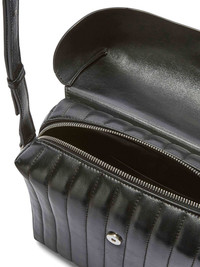 panelled leather shoulder bag Highlights - Black - Calf leather - Padded panels - Embossed logo to the front - Foldover top with magnetic fastening - Concealed top zip fastening - Silver-tone hardware - Adjustable shoulder strap - Main compartment Imported Composition Outer: Ovine Leather (top grain) 100% Lining: Ovine Leather (top grain) 100%