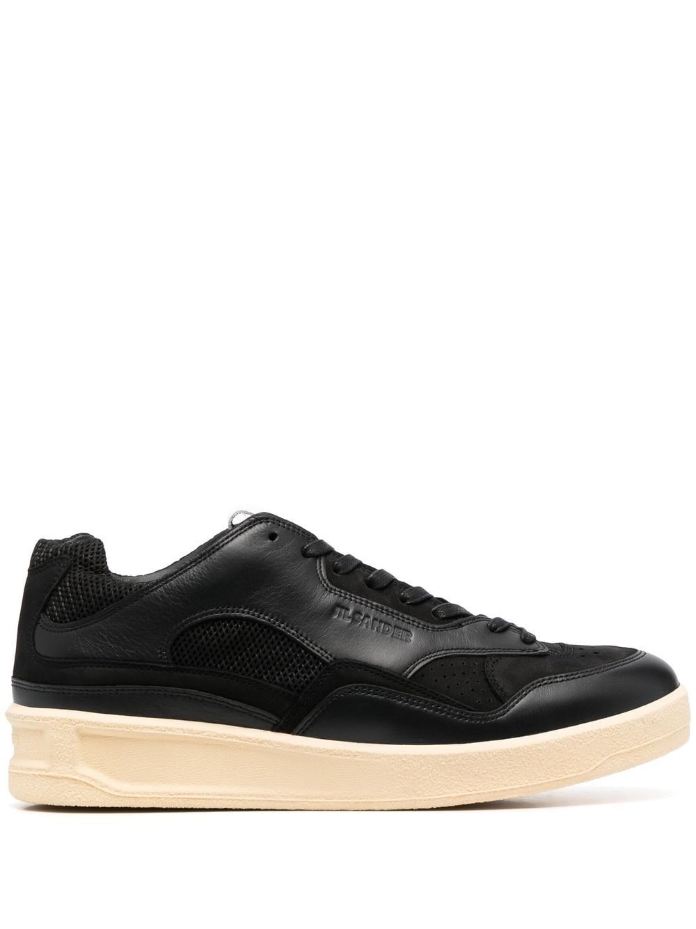 panelled low-top sneakers Highlights - Black - Calf leather - Panelled design - Branded insole - Round toe - Front lace-up fastening - Flat rubber sole Imported Composition Outer: Calf Leather 100% Sole: Rubber 100% Lining: Calf Leather 100% SIZE & FIT Measurement HEEL 1.37 in(3.5 cm) Sole height 0.98 in(2.5 cm)