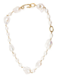 pearl-embellished necklace cream white/gold-tone brass/pearl pearl embellishment gold-tone hardware cable-link chain hook fastening Made in Italy SIZE & FIT Model measurements Height 5 ft 10 in(1.77 m) Bust/Chest 29.92 in(76 cm) Hips 34.25 in(87 cm) Waist 23.62 in(60 cm) Measurement Length when open 22.04 in(56 cm) WIDTH 0.78 in(2 cm)