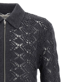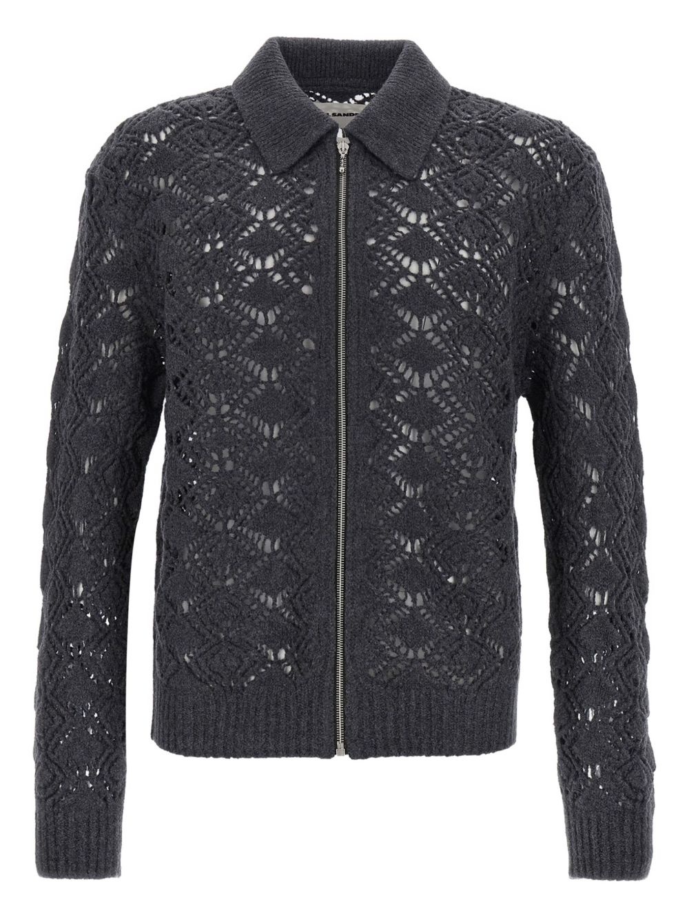 perforated-detail zip-front cardigan Highlights - Dark gray - Openwork pattern - Shirt collar - Front zip fastening - Long sleeves - Ribbed cuffs Made in Italy Composition Virgin Wool 100% Washing instructions Read Manufacturer Guidelines