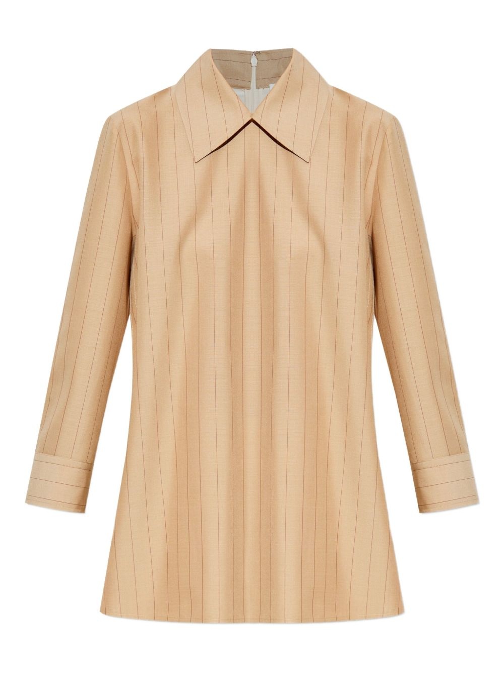 pinstriped blouse Highlights - Beige - Rear zip fastening - Long sleeves - Vertical stripe pattern - Straight hem Made in Italy Composition Wool 76%, Mohair 23%, Cotton 1% Washing instructions Read Manufacturer Guidelines