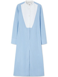 plastron poplin shirtdress Highlights - Light blue/white - Cotton - Poplin texture - Vertical stripe pattern - Contrasting panel detail - Gathered detailing - Band collar - Front button fastening - Long sleeves - Buttoned cuffs - Two side inset pockets - Flared hem - Mid-length Made in Italy Composition Cotton 100% SIZE & FIT FittingInformation Designed for a relaxed fit, this piece allows for comfort and movement when worn Made from a midweight non-stretch fabric This piece fits true to size – take your usual size Washing instructions Read Manufacturer Guidelines