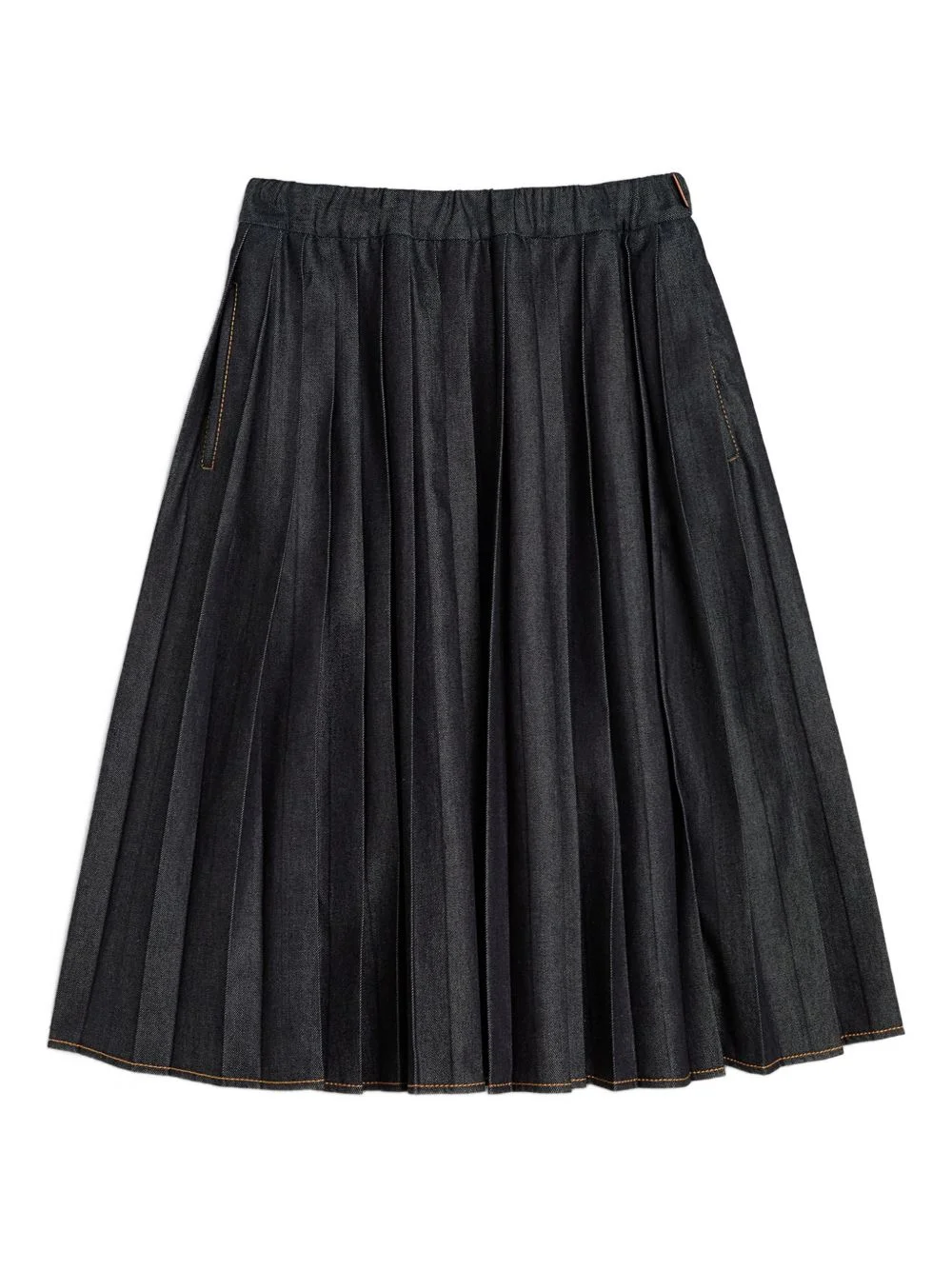 pleated denim straight skirt Highlights - Dark blue - Pleats - Elasticated waist - Side-seam pockets - Leather patch - Raw denim Made in Italy Composition Cotton 72%, Viscose 28%