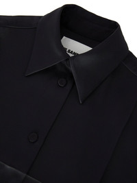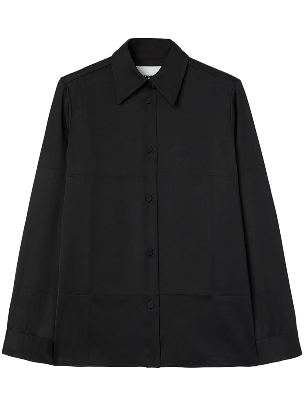 pointed-collar satin shirt Highlights - Black - Satin finish - Pointed flat collar - Front button fastening - Long sleeves - Buttoned cuffs - Straight hem Made in Italy Composition Viscose 83%, Silk 17% SIZE & FIT FittingInformation Designed for a relaxed fit, this piece allows for comfort and movement when worn This piece fits true to size – take your usual size