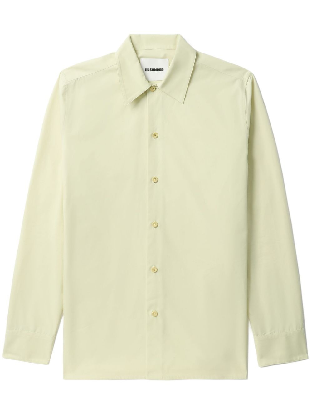poplin cotton shirt Highlights - Pastel yellow - Cotton - Poplin texture - Classic collar - Front button placket - Long sleeves - Buttoned cuffs - Straight hem Made in Italy Composition Cotton 100% SIZE & FIT FittingInformation Designed for a relaxed fit, this piece allows for comfort and movement when worn Made from a midweight non-stretch fabric This piece fits true to size – take your usual size Measurement CHEST 49.6 in(126 cm) LENGTH 32.67 in(83 cm) WAIST 49.6 in(126 cm) SLEEVE LENGTH 25.98 in(66 cm)