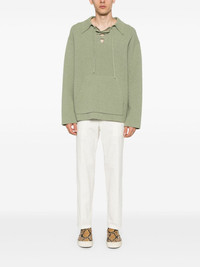 pressed-crease straight-leg trousers Highlights - Chalk white - Cotton - Poplin texture - Elasticated waistband - Belt loops - Pressed crease - Two side inset pockets - Two rear welt pockets - Straight leg - Concealed front button, hook and zip fastening Made in Italy Composition Outer: Cotton 100% Lining: Cotton 100% SIZE & FIT Model measurements Height 6 ft 2 in(1.87 m) Bust/Chest 36.41 in(92.5 cm) Hips 35.43 in(90 cm) Waist 29.52 in(75 cm) FittingInformation Designed for a straight-leg, allowing for an unrestricted and comfortable fit over the leg The partially elasticated waistband offers increased movement and comfort at the waist Made from a midweight non-stretch fabric This piece fits true to size – take your usual size