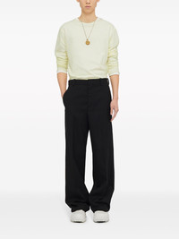 tailored wool trousers Highlights - Black - Wool - Pressed crease - Belt loops - Concealed fly and button fastening - Two side slit pockets - Two rear welt pockets Made in Italy Composition Wool 100% SIZE & FIT FittingInformation Designed with a wide leg, offering a loose and roomy fit The unfinished hems allow for the length to be altered Made from a midweight non-stretch fabric Washing instructions Read Manufacturer Guidelines