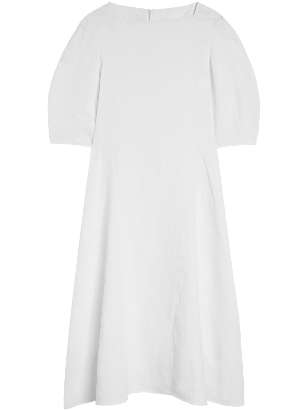 puff-sleeves dress Highlights - White - Linen/flax - Square neck - Concealed rear fastening - Short puff sleeves - Flared skirt Made in Italy Composition Linen/Flax 100% SIZE & FIT Measurement HIPS 34.01 in(86.4 cm) LENGTH 50 in(127 cm) WAIST 30 in(76.2 cm) BUST 34.01 in(86.4 cm)