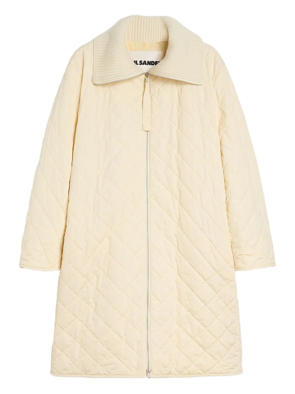quilted coat Highlights - Light beige - Ribbed collar - Diamond quilting - Front zip closure - Side-seam pockets Made in Italy Composition Polyamide 100%, Polyester 100% Washing instructions Read Manufacturer Guidelines