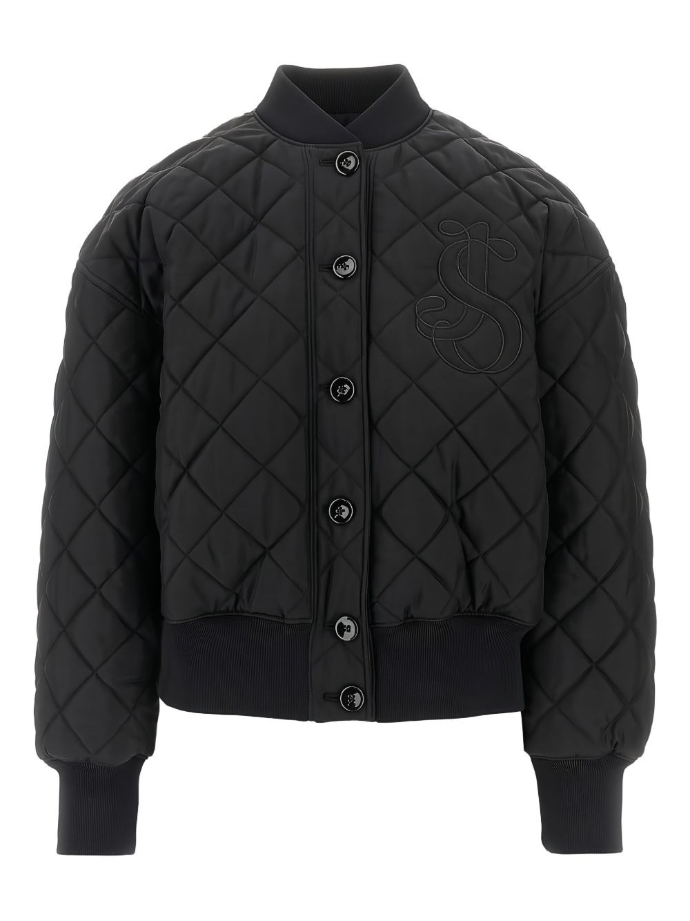 quilted monogram bomber jacket Highlights - Black - Quilted diamond pattern - Embroidered monogram - Button fastening - Ribbed cuffs - Ribbed hem Made in Italy Composition Viscose 100% Washing instructions Read Manufacturer Guidelines